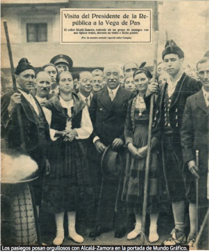 Décadas después, durante la Segunda República, el Pas volvió a ocupar un lugar visible en la vida pública. En 1932, la visita de Niceto Alcalá-Zamora, presidente de la República, situó a Vega de Pas en la primera línea informativa del país. Las imágenes de los pasiegos recibiéndole, con naturalidad y orgullo, mostraron a España un mundo rural con identidad propia, consciente de su singularidad y de su lugar en la historia.